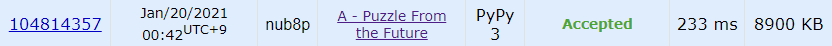 [Good Bye, BOJ 2020!] A.끝말잇기 (2) | 2021.01.03 |