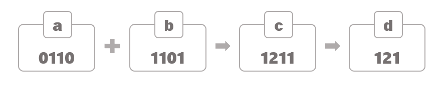 길이가 같은 a, b의 데이터가 들어온다. a와 b를 더한 게 c이다. d는 연속되는 같은 숫자열을 없앤 것이다.