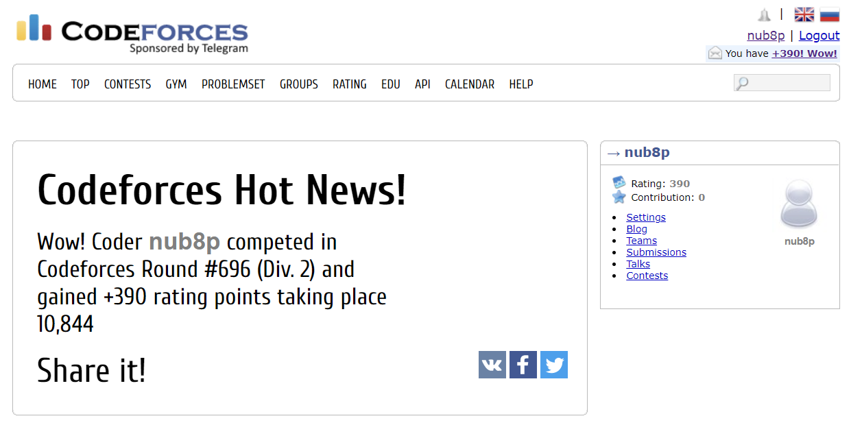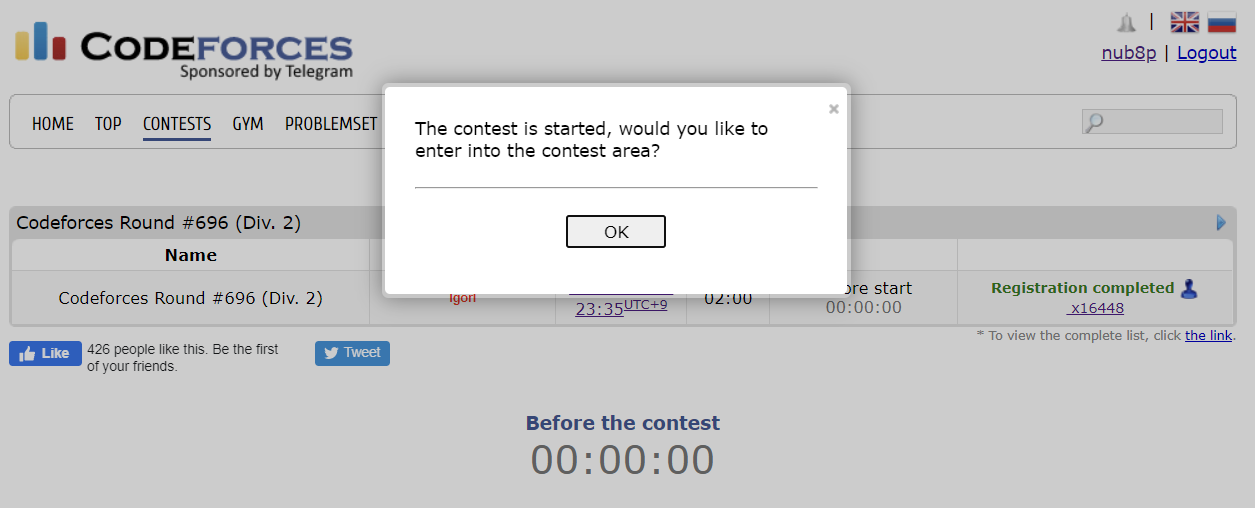 오후 11:35분부터 2시간 동안 Codeforces Round #696 (Div. 2)에 참여하였다.