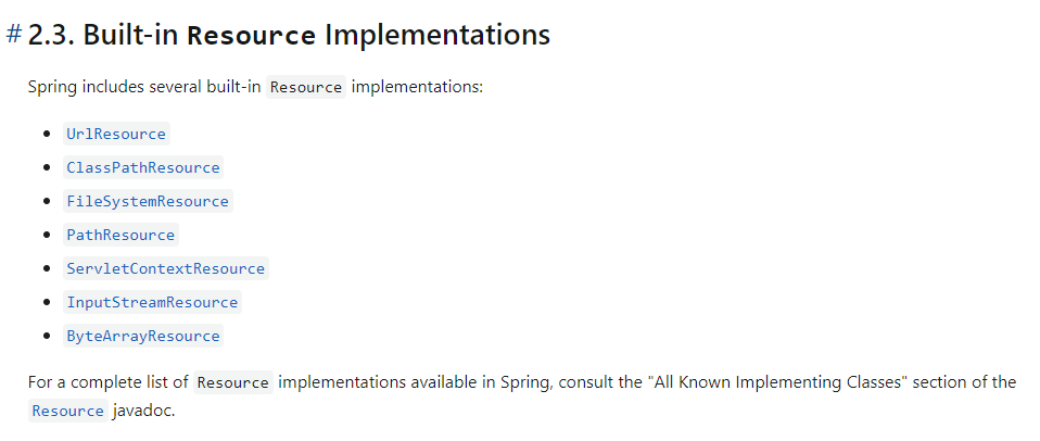모든 Application context가 ResourceLoader 인터페이스를 구현하고 있다.