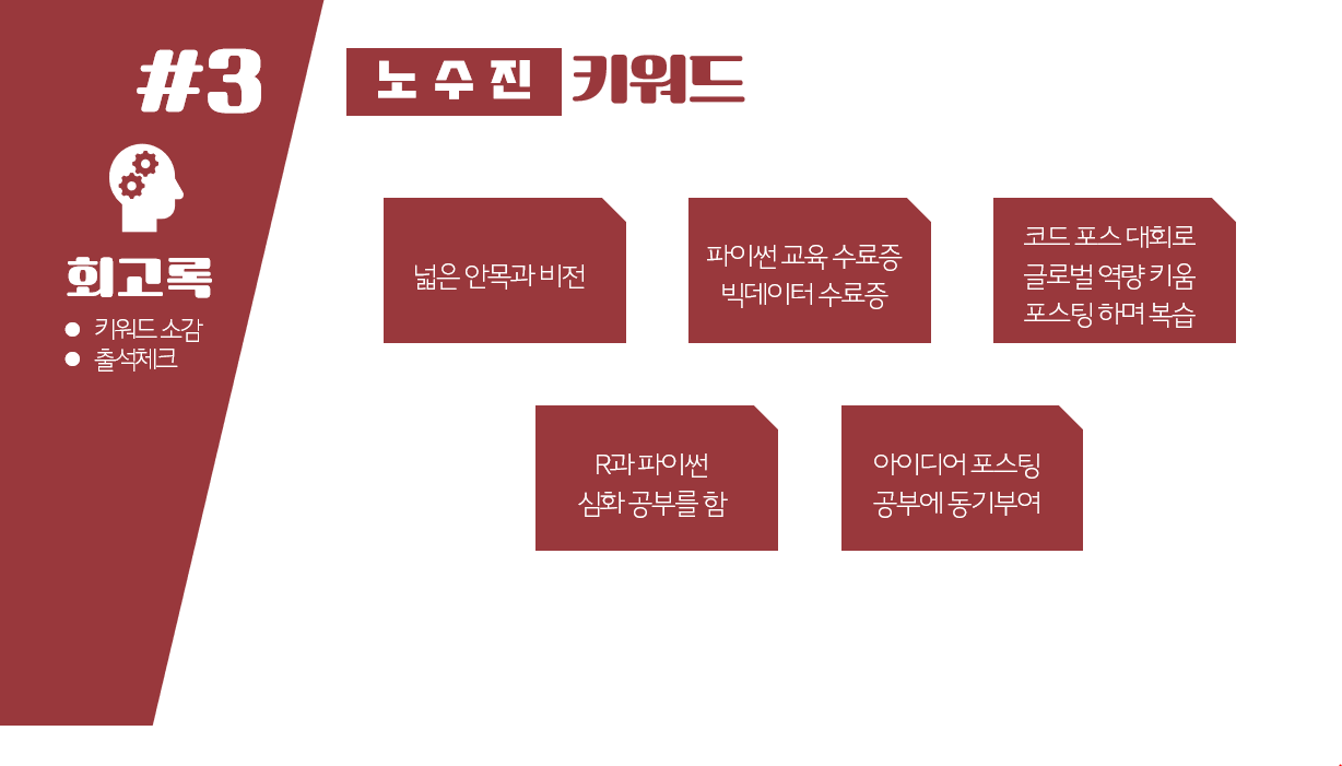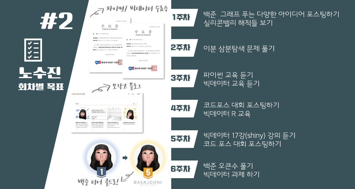 그 당시에 나갔던 대회 리뷰와 빅데이터 수업을 듣는 것으로 세웠다.